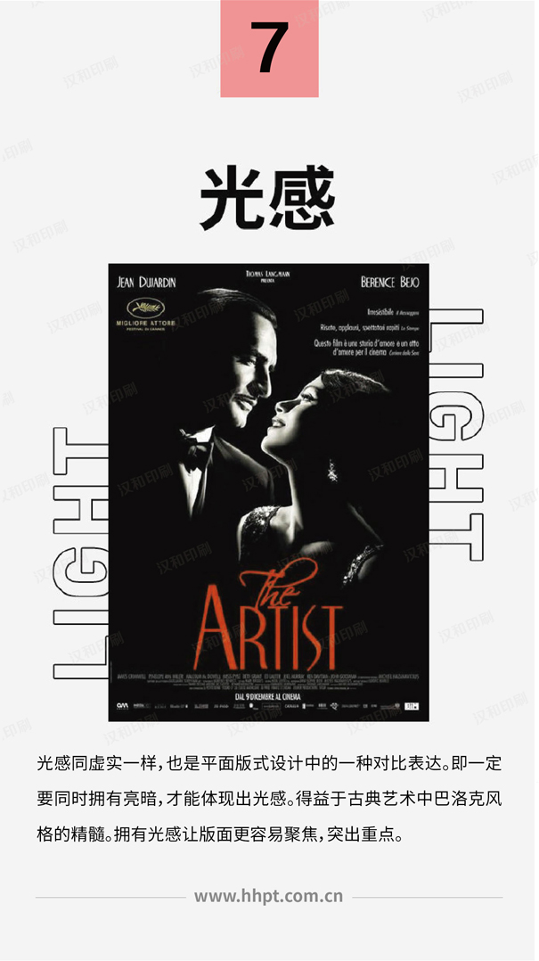 光感同虛實一樣,也是平面版式設計中的一種對比表達。即一定要同時擁有亮暗,才能體現出光感。得益于古典藝術中巴洛克風格的精髓。擁有光感讓版面更容易聚焦,突出重點。
